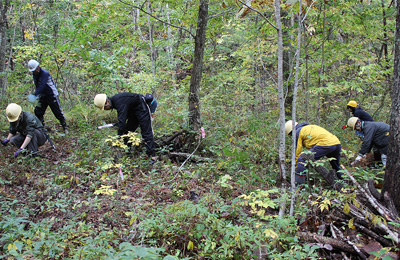- 森の手入れ、植樹祭を行います。数十年後に大きな木へと育ちますように。