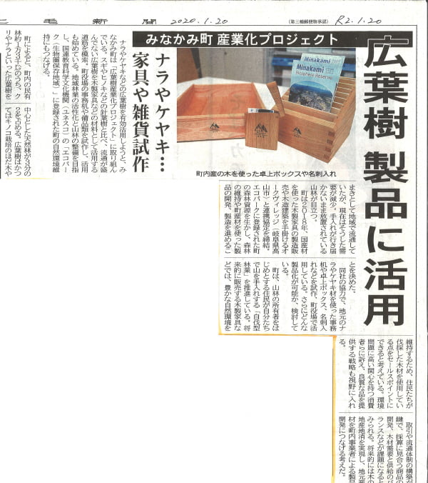 本プロジェクトは、2017年6⽉に「ユネスコエコパーク」(※1)に認定されたみなかみ町が推進する、「⾃伐型林業」(※2)の整備の過程で伐り出される広葉樹を、⽊材としてオークヴィレッジが活⽤し、製品づくりと市場への販売を⾏うものです。