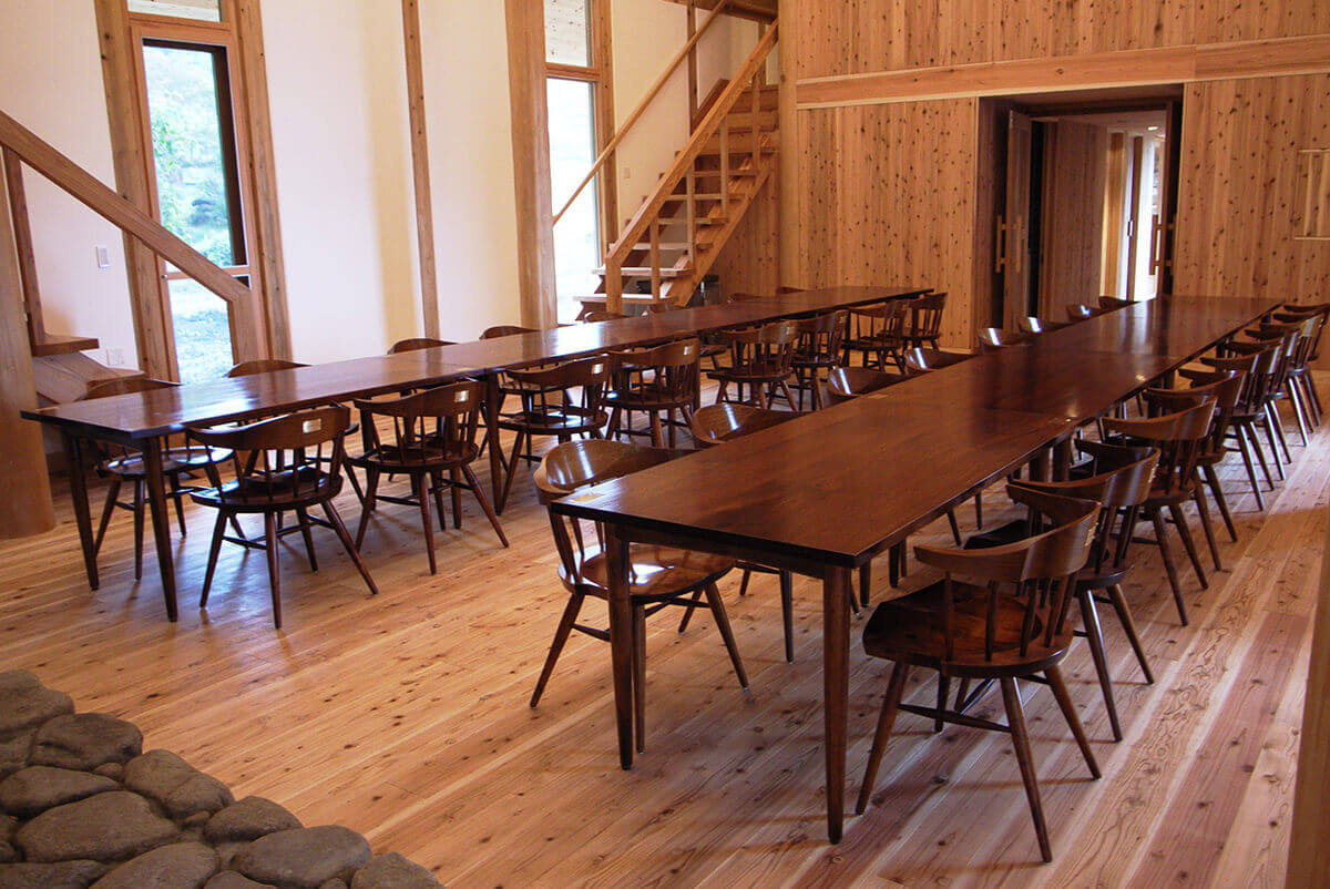 森の手入れをするために伐りだされた材をお預かりし、財団法人C.W.ニコル・アファンの森財団「アファンセンター」にテーブルと椅子を納めました。