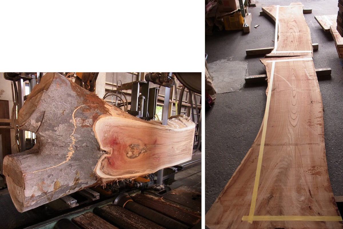 その原木からは、ケヤキ特有の力強さと、艶のある優美さが感じられます。