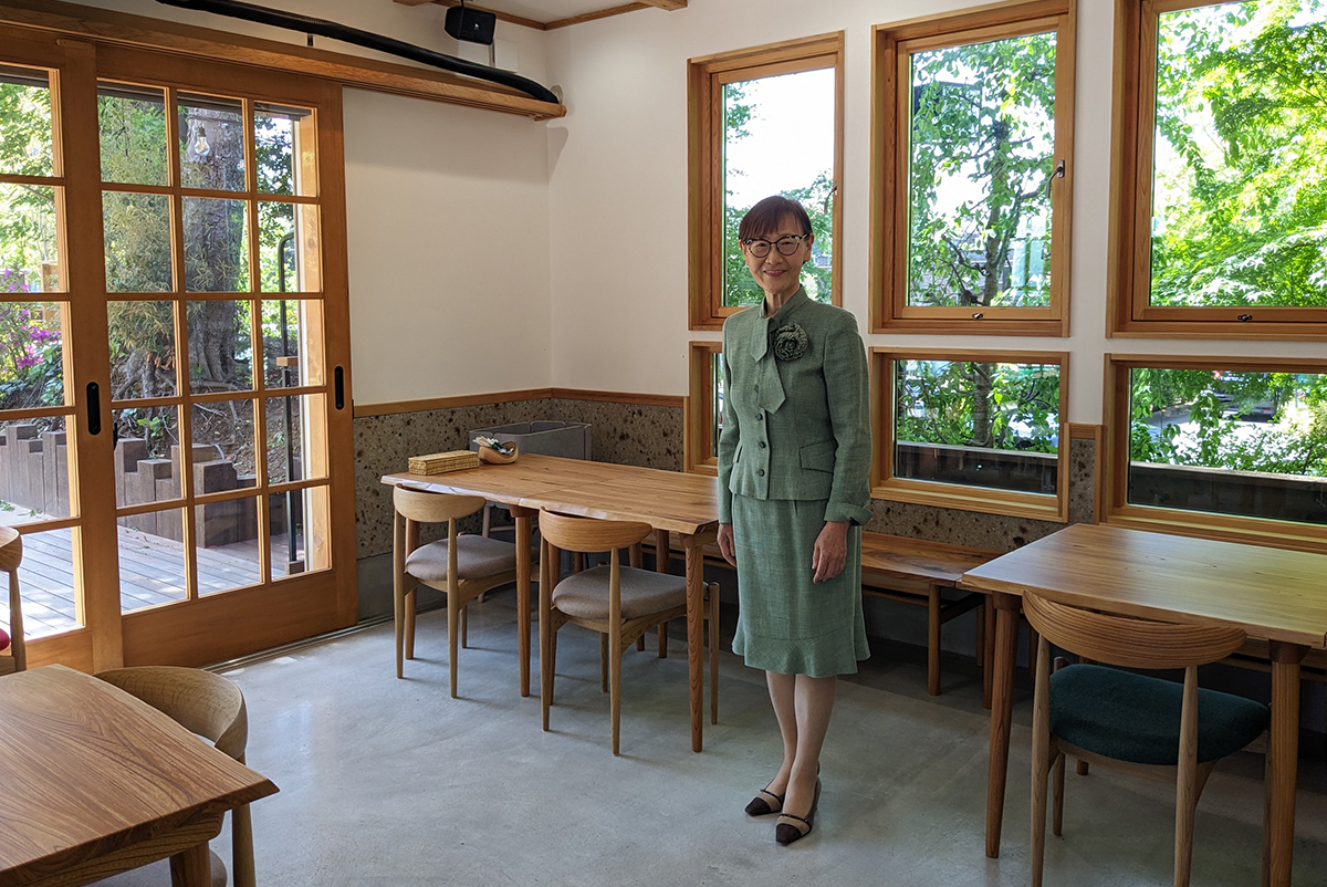 オーナーの高田房枝様は、一般社団法人「鶴見みどりのルート1をつくる会」の代表も務めており、横浜市と協働して地域の緑地化や環境整備に取り組まれています。地域の木材資源の循環活用を推進し、自身の所有地で伐採したケヤキで家具制作を依頼されました。