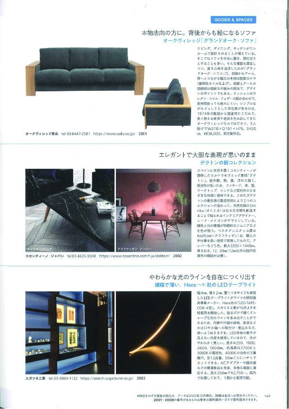 特集記事に「Swallowチェア」「グランドオーク・ソファ」が掲載されています。