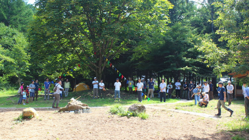 ショールーム横の森には、大きなトチの木のシンボルツリーを中心に広場があります。この広場でお客様との四季折々のイベントや体験型ワークショップを行っています。
